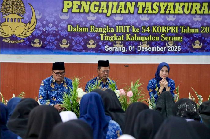 Serang – Javaexpress.co.id | Bupati Serang, Ratu Rachmatuzakiyah, mengajak para Aparatur Sipil Negara (ASN) dan Non-ASN di lingkungan Pemerintah Kabupaten (Pemkab) Serang untuk berdonasi bagi korban banjir dan longsor di Sumatera Barat (Sumbar) serta Sumatera Utara (Sumut). Ajakan tersebut disampaikannya saat memberikan sambutan pada Tasyakuran HUT ke-54 Korps Pegawai Republik Indonesia (Korpri) tingkat Kabupaten Serang, Senin (1/12/2025).