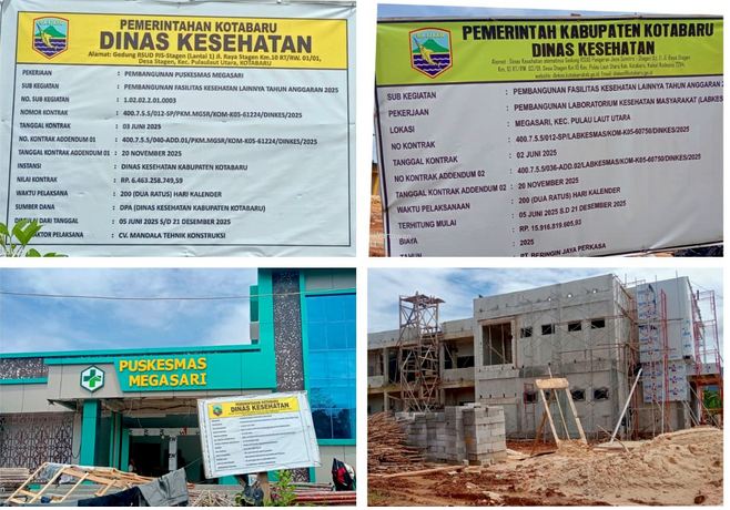 Kotabaru — Javaexpressco.id | Pembangunan Puskesmas Megasari dan Laboratorium Kesehatan Masyarakat (Labkesmas) di Kabupaten Kotabaru hingga kini belum rampung, meskipun masa pelaksanaan proyek dilaporkan hampir berakhir. Kondisi tersebut memicu perhatian publik terhadap kinerja pelaksanaan proyek fasilitas kesehatan yang dinilai strategis dan mendesak bagi masyarakat, Ahad (21/12/2025).