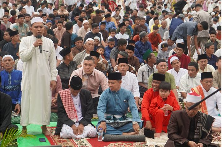 Dalam sambutannya, Zukri menegaskan bahwa Idul Fitri tidak sekadar menjadi perayaan setelah menjalankan ibadah puasa Ramadhan, tetapi juga momentum untuk memperkuat komitmen membangun daerah.