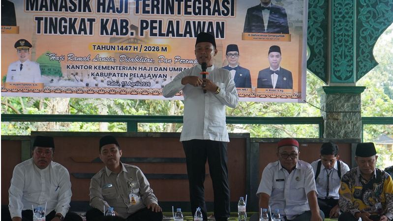 Pelalawan — Javaexpress.co.id | Pemerintah Kabupaten Pelalawan terus menunjukkan komitmennya dalam memberikan pelayanan terbaik kepada calon jemaah haji. Hal ini tercermin dari pelaksanaan Bimbingan Manasik Haji tingkat Kabupaten Pelalawan Tahun 1447 H/2026 M yang secara resmi dibuka oleh Wakil Bupati Pelalawan, H. Husni Tamrin, SH, di Balai Seminai, Rabu (15/4/2026).
